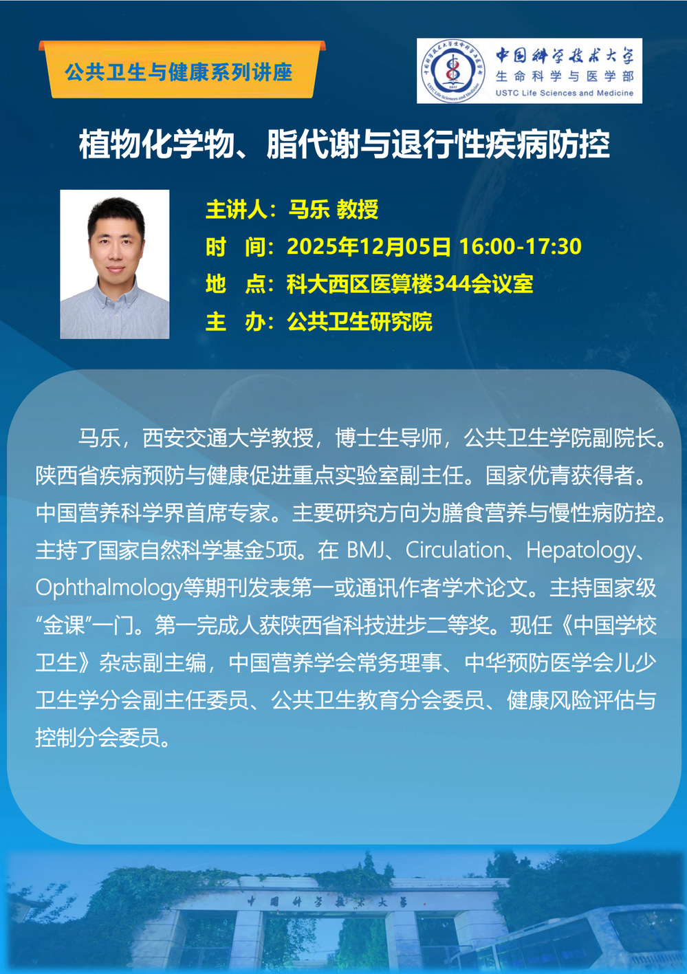 公共卫生与健康系列讲座:2025.12.5 西安交通大学马乐教授学术报告会